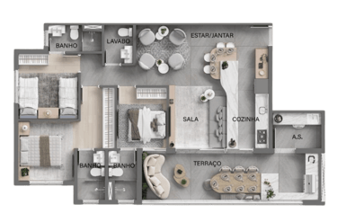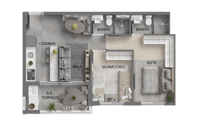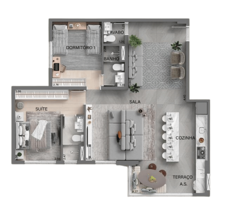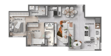 57m² - 1 e 2 dormitórios