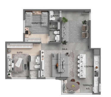 Plantas de 57m², com 2 dormitórios - sendo 1 suíte e um dormitório cuidadosamente pensada para você. Com opção de sala ampliada e 1 suíte confortável.