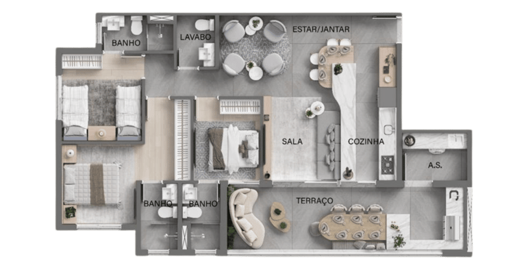 Plantas de 105m² com deposito privativo, com 3 dormitórios - sendo 3 suíte e uma sala ampla cuidadosamente pensada para você. Opção de até banheiro senhor/ senhora. Oportunidade 2 vagas de garagem.