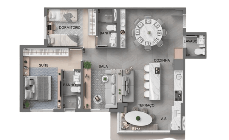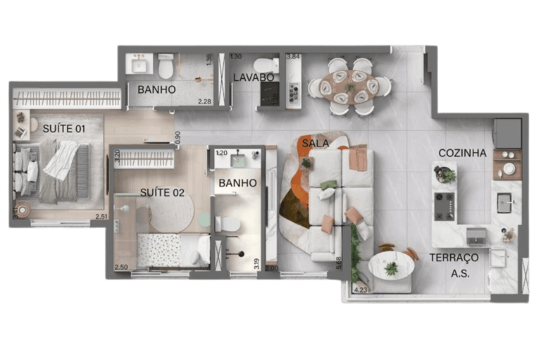 74m² - 2 e 3 dormitórios